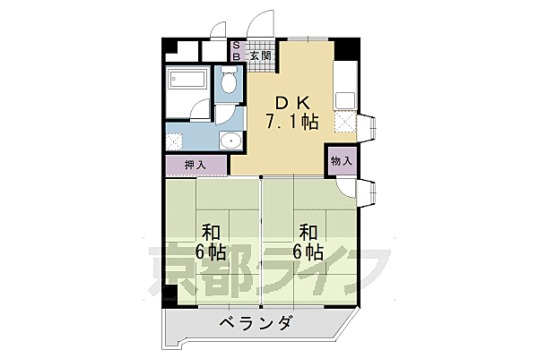 八幡市男山長沢 マンション 2DK/2階