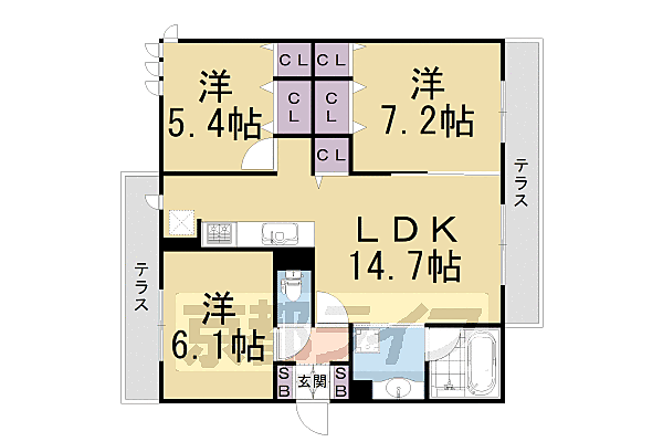 くおん嵯峨 西棟 101 3LDK/1階