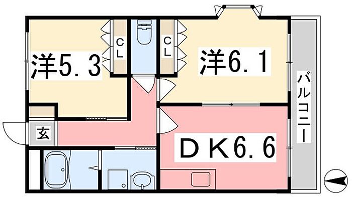 レインボーパレスII 202 2DK/2階