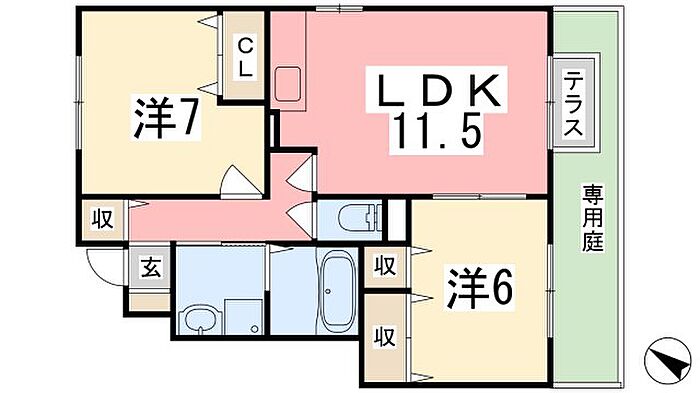 グランドゥール御津 B棟 101 2LDK/1階