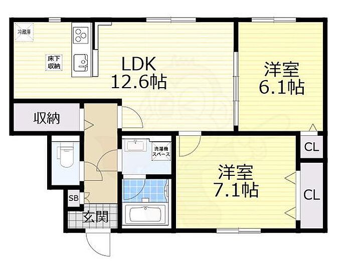 高槻市緑町 アパート 2LDK/1階