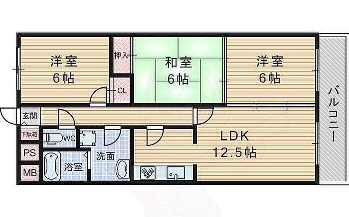 グリーンハイム上山手2 3LDK/3階