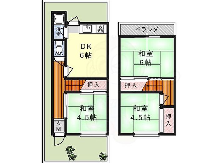 塚原3丁目2戸1貸家 3DK/1階
