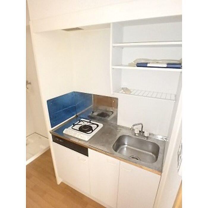 ガスコンロ1口のキッチンを備え、バス・トイレ別で使い勝手の良い間取りです。フローリングの明るい室内に、室内洗濯機置き場や浴室乾燥機など日常を支える設備が整っています。