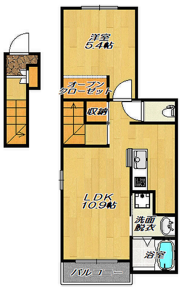 大東市御供田3丁目 アパート 1LDK/2階