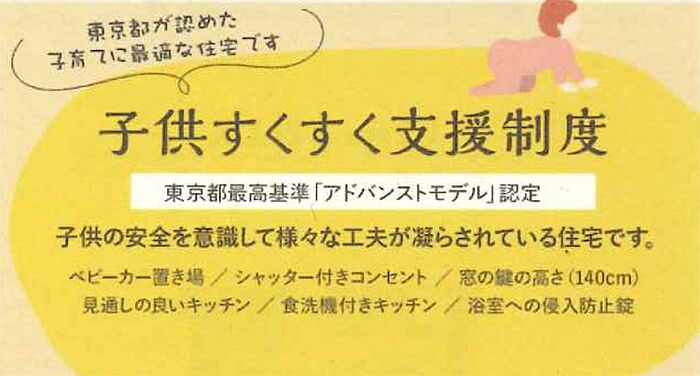 ※更新料1ヶ月※解約2ヶ月前予告(法人契約は応相談)※キッズルーム・ベビーカー置場あり/子供すくすく支援制度認定物件※保証会社加入必須※1年未満の解約は短期解約違約金有り※ペット・楽器不可※インターネット無料(NURO光Connect)※法人申込の場合は礼金2か月※バイク置き場(全8台分 3000円)※子供用駐輪場は全41台分(1住戸1台まで先着順)※