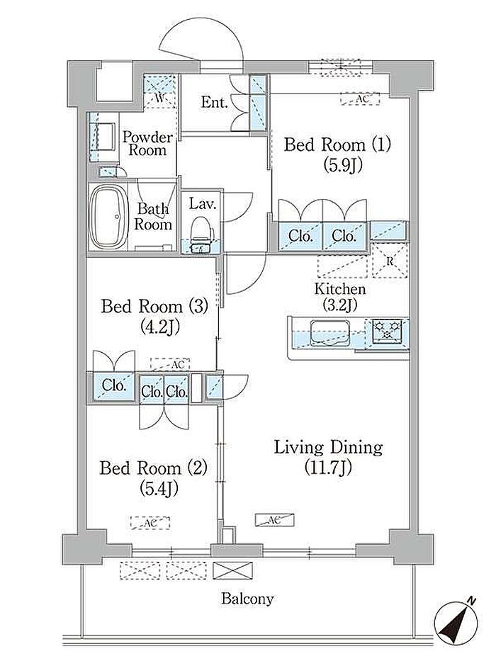 - コンロ三口