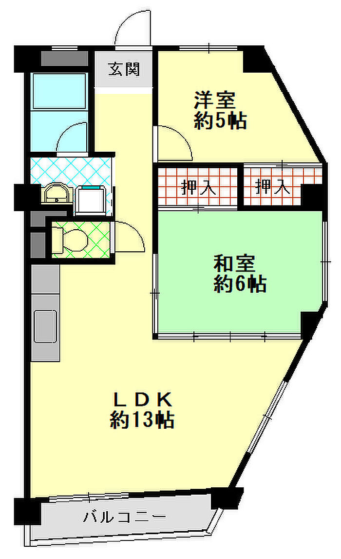 振分タイプの広々2LDK。収納有り。角部屋。事務所使用相談可。南東向き。人気の高羽小、鷹匠中学校区