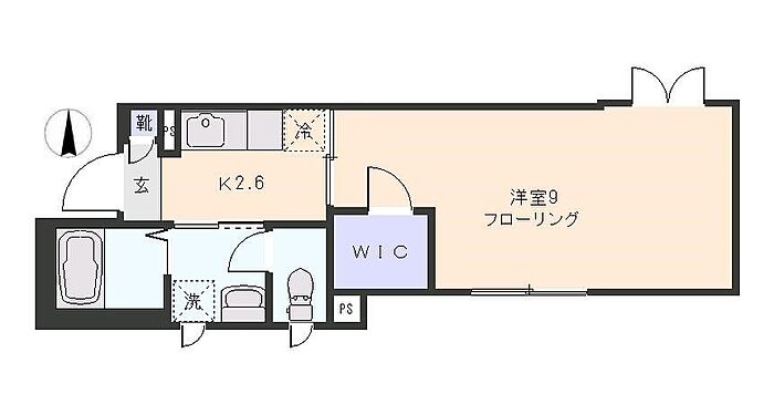 ウォークインクローゼット付きの広々1Kです。独立洗面台やネット使用料無料等、住環境良好です。高台に立地しており、全面が道路ではないので1階でも人目が気になりません。