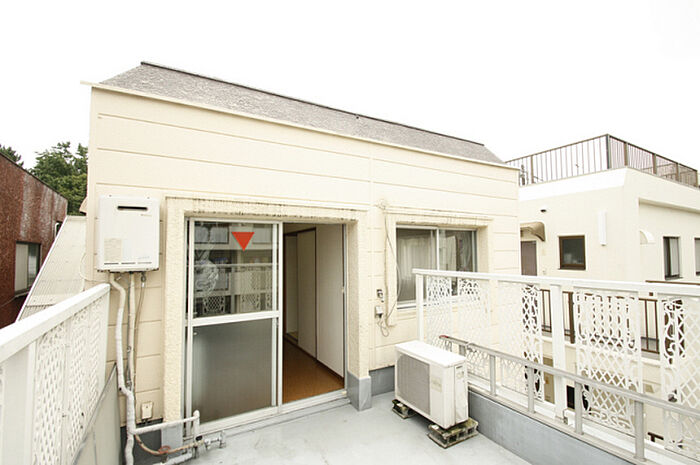 最上階・角部屋。広々ルーフバルコニー付き。2口ガスコンロ設置可。コンビニ徒歩2分。エアコン付、定借2年。