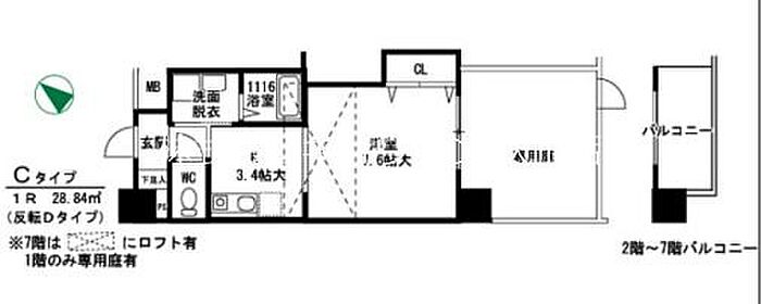 サウスアルカディア 1K/7階