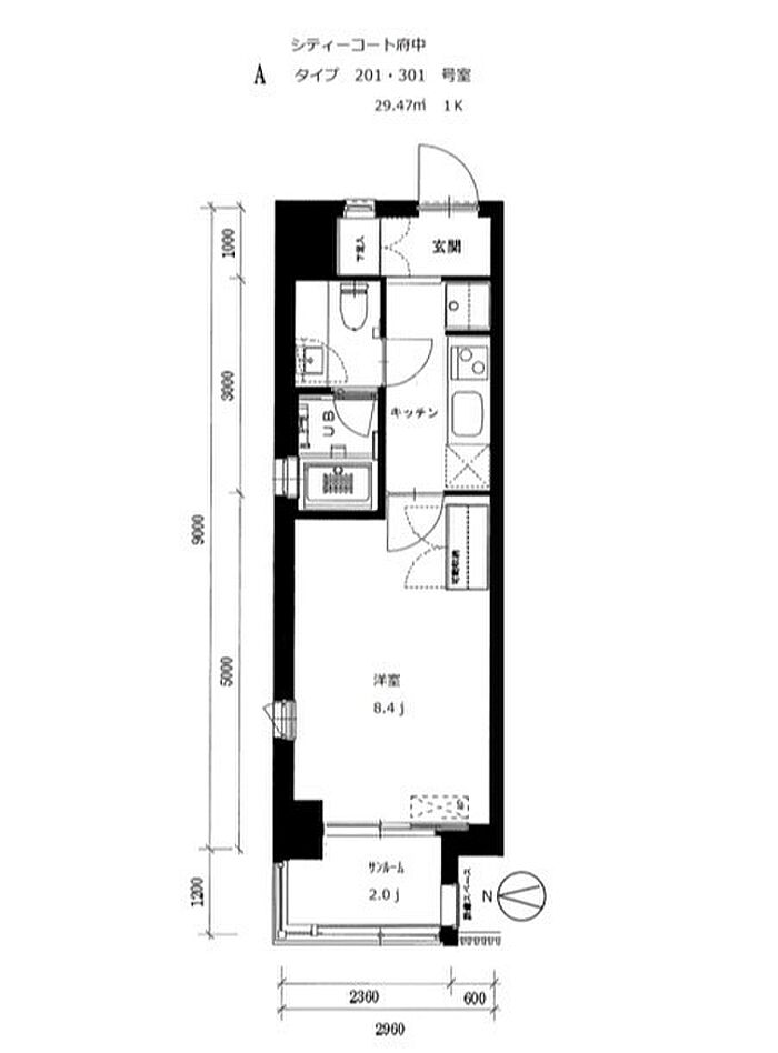 シティーコート府中 201 1K/2階
