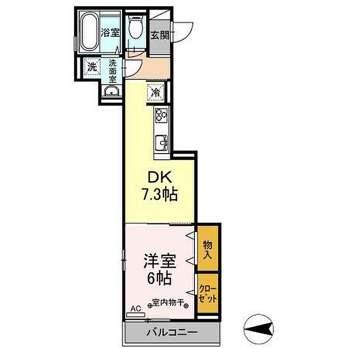パレス国立 206 1DK/2階