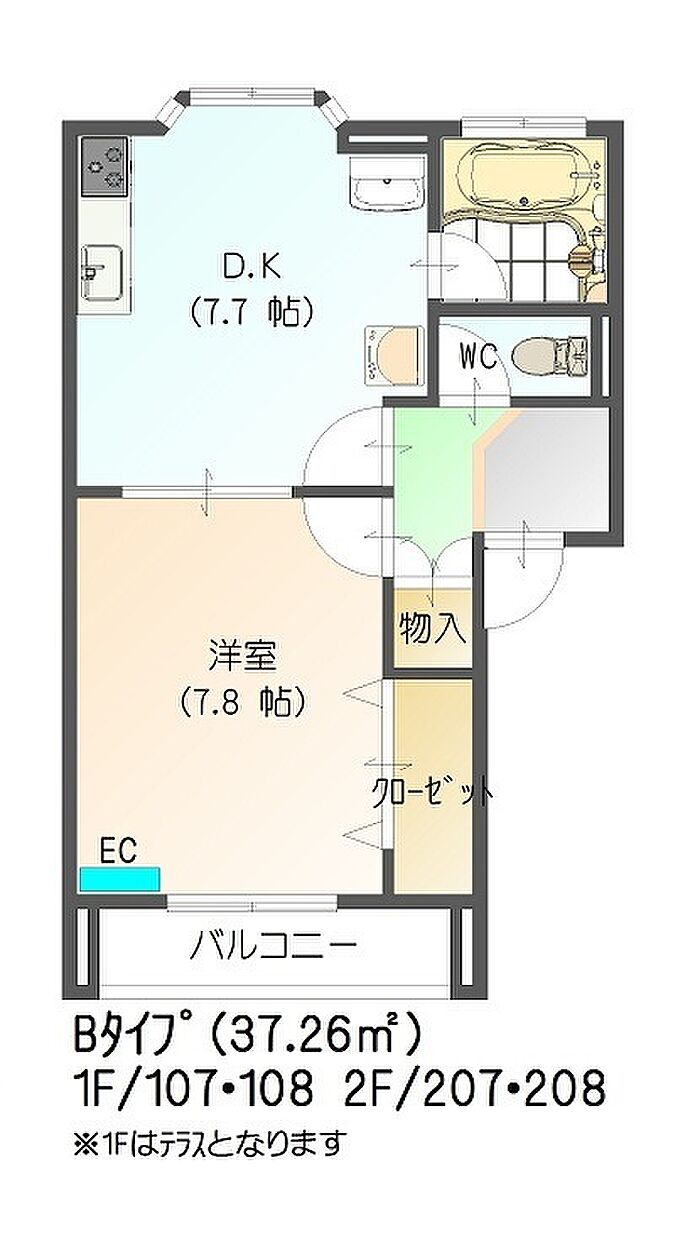 コーポすまいる (Bタイプ) 1F/107 1DK/1階