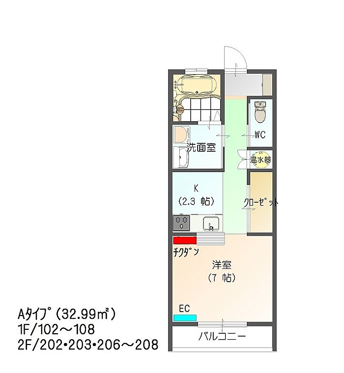 すまいる16番館(Aタイプ) 2F/208 1K/2階