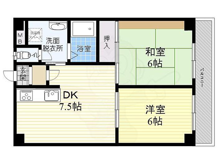 法人可 ヴィライーストサイド夙川209号室、2DK、41.06平方メートル。西宮北口駅徒歩22分、設備充実でございます。