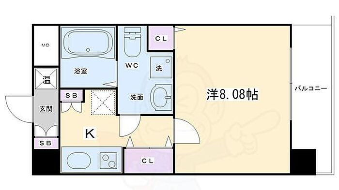 フォース二条城東 1K/2階