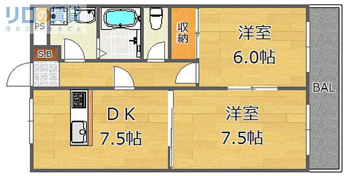 リベルコート 2DK/3階