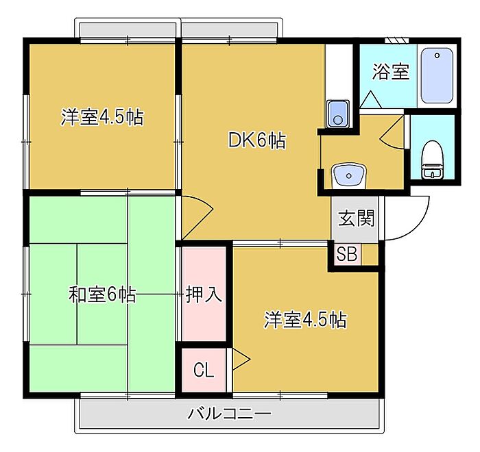 洋室 4.5帖×2)