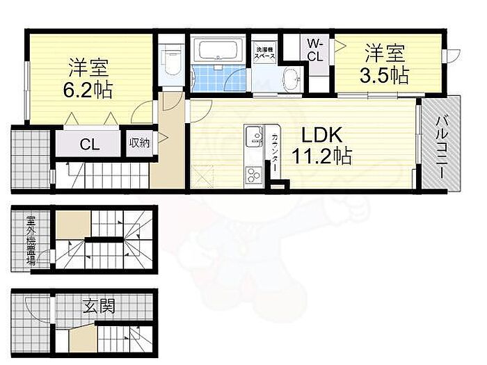 摂津市千里丘7丁目 アパート 2LDK/3階