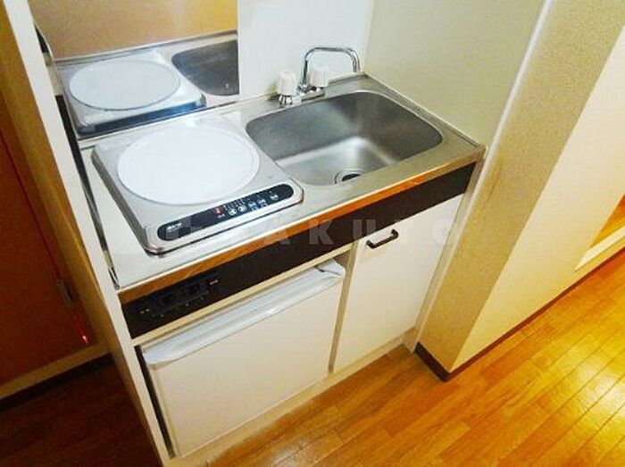 ワンルームとはちがった素敵なキッチンがあるお住まいです。システムキッチン付きのマンションです。