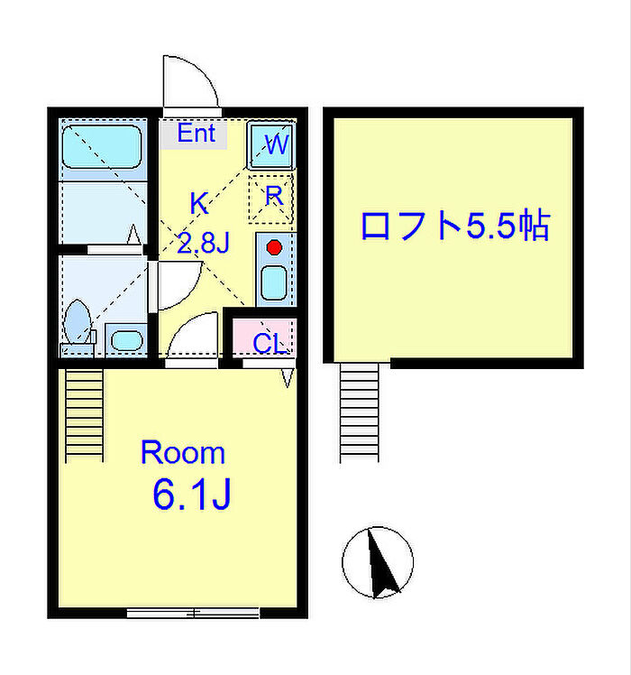 2階ロフト付のお部屋!!敷礼ゼロゼロと初期費用がお得(退去負担金44,000円先預かり) 原付バイク応相談