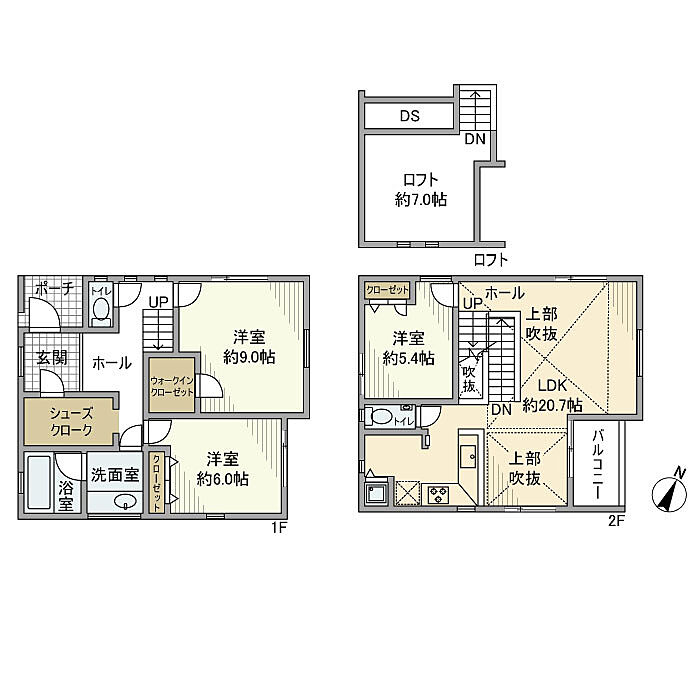 吹き抜けのある開放的なLDK/ロフト有/駐車スペース1台分有/WIC/収納充実/追い焚き/浴室暖房