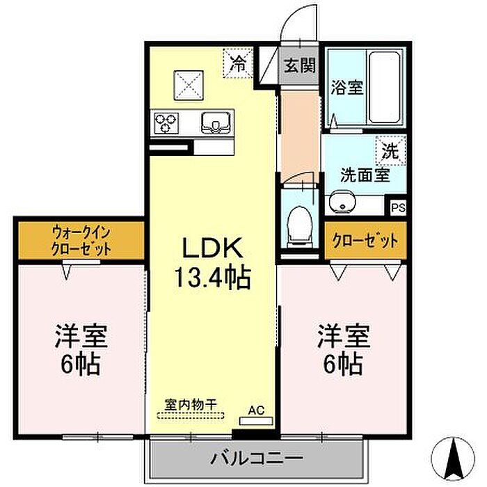 川崎市中原区下小田中6丁目 アパート 2LDK/1階