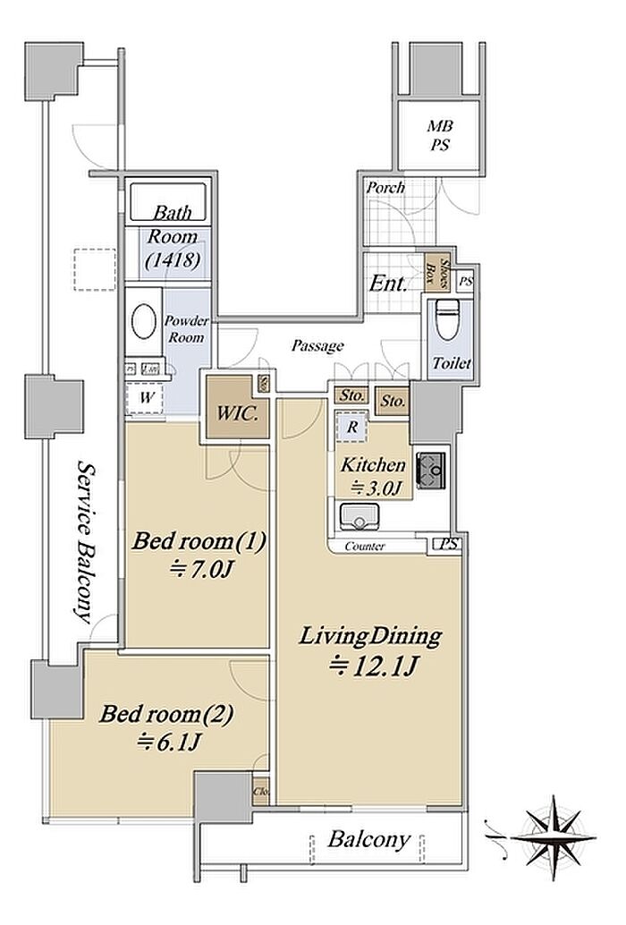 シティタワー堀江 2LDK/13階