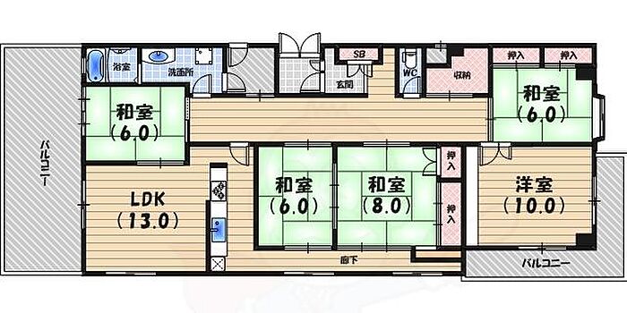 西宮市奥畑 マンション 5SLDK/6階