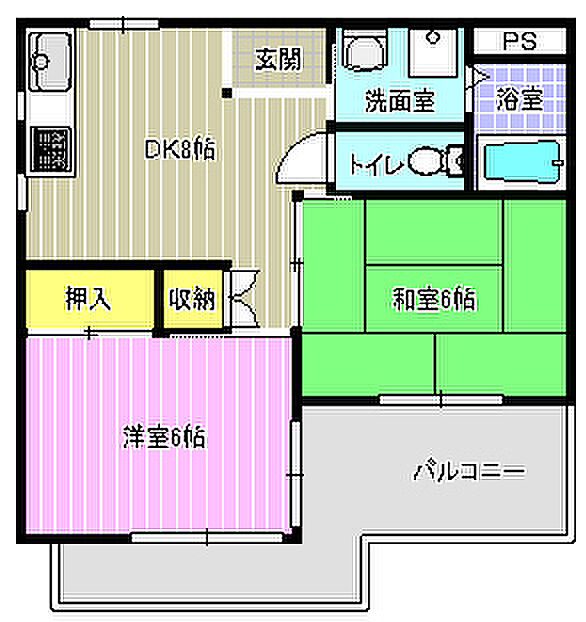 パームサイドビラ 303号 2DK/3階
