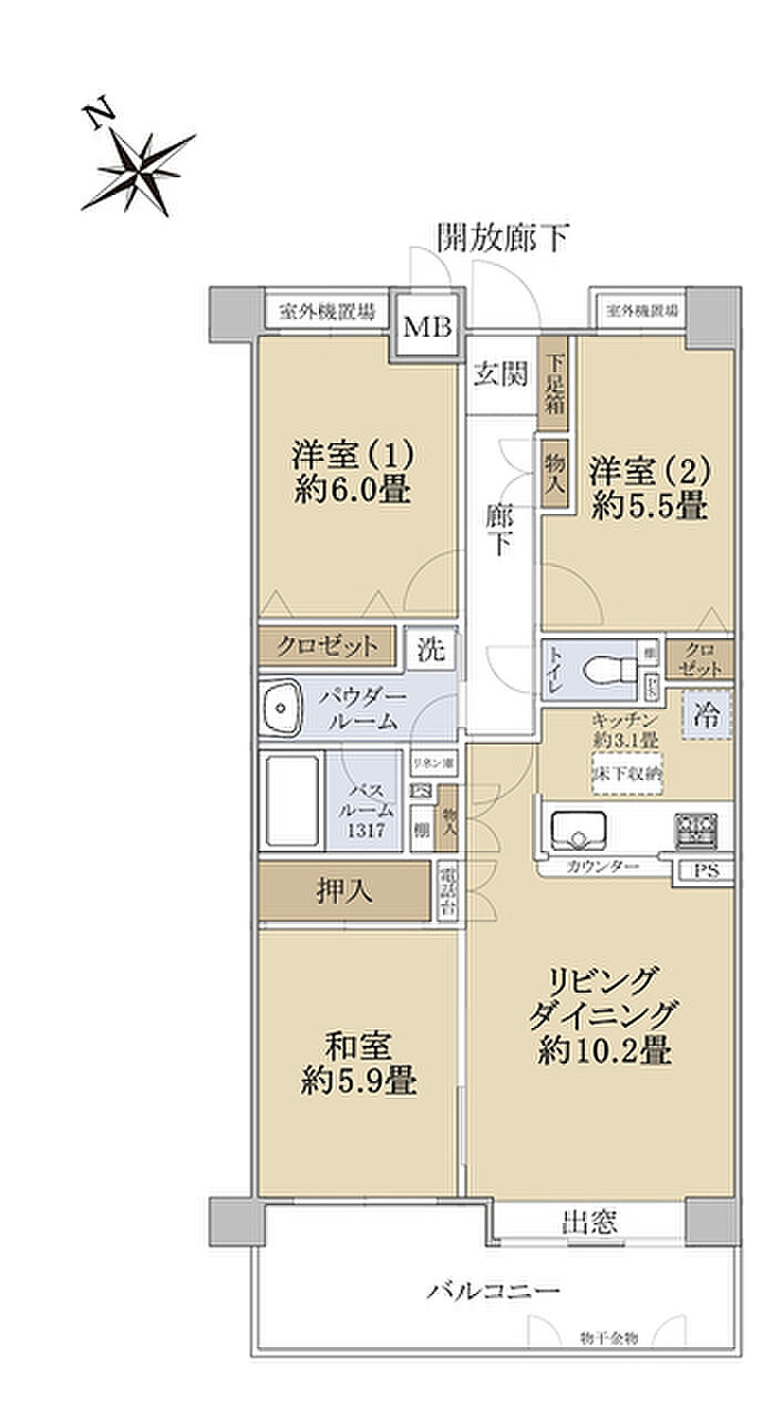 リビングダイニングキッチン 13.3帖)