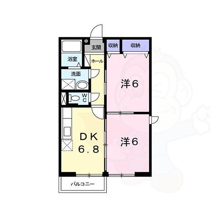 オーク鶏冠井 2DK/1階