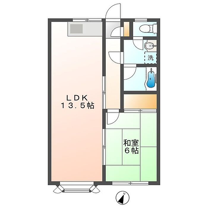 リビング13.5帖1LDK。脱衣スペース有り洗面所独立。定期借家契約2年(更新不可)