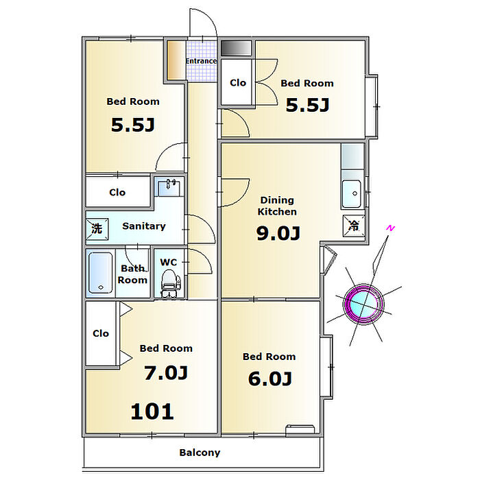 スカイビューNo11 101 4DK/1階