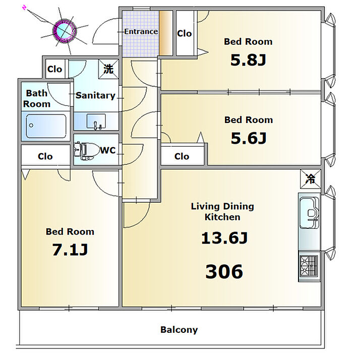 ガーデンコート 306 3LDK/3階