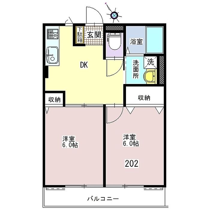 マリーンブルー 202 2DK/2階