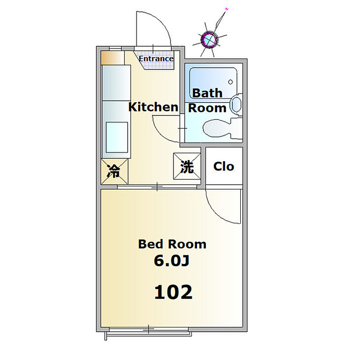 フラワーハイツ 102 1K/1階