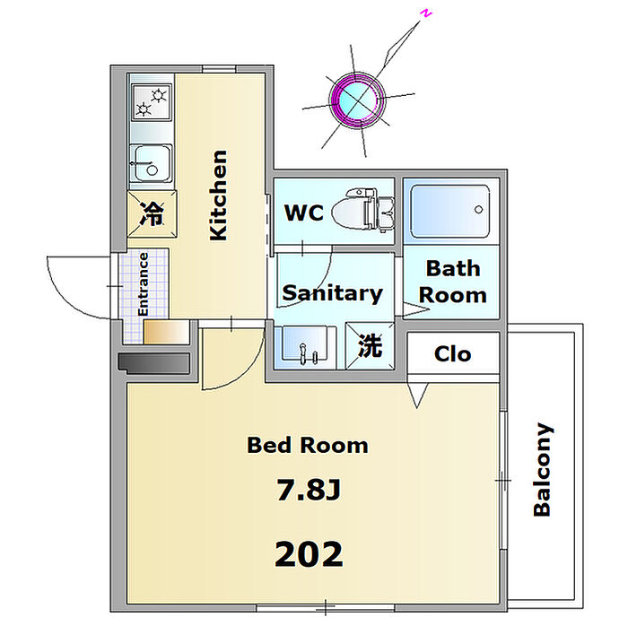 ヘーベル ラ・フォーレ 202 1K/1階