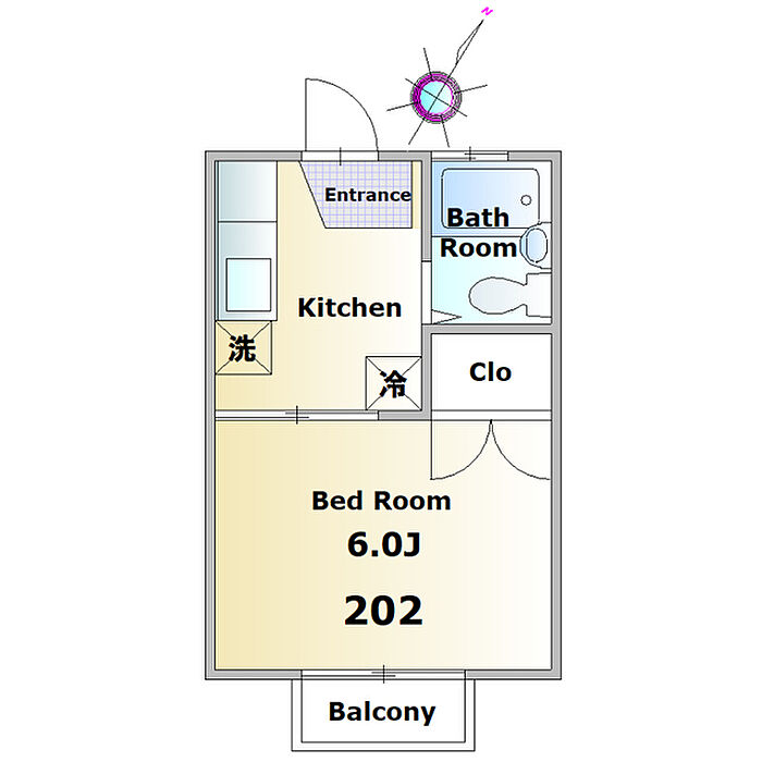 スカイビューNo10 202 1K/2階