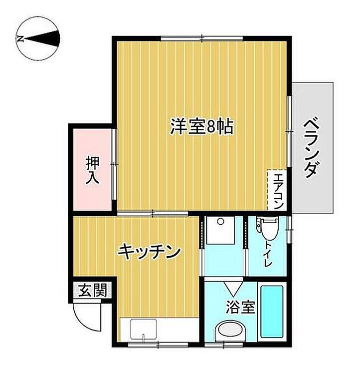 独立キッチン、冷暖房機1台、日当り良好です。