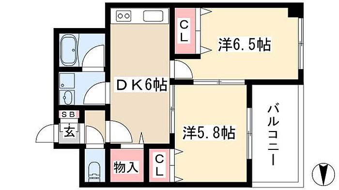 スリーウェイ金山 2DK/6階