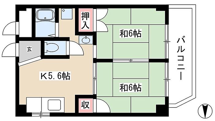 荒中マンション 2DK/2階
