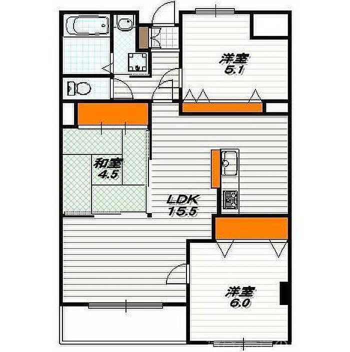 ゆったりとした3LDKの間取りに3口ガスシステムカウンターキッチン・エアコン2基、追炊き機能付き大型浴槽、など充実した設備を完備です。日当りも東向きで良好です♪また、大通りから少し離れているので大変静かな立地です。