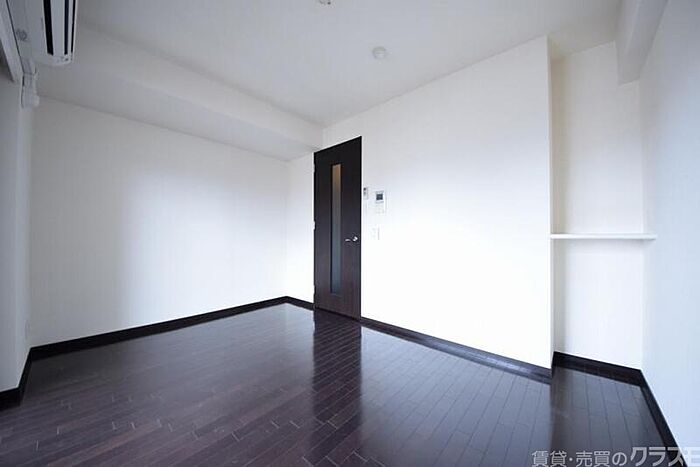 2口ガスコンロ付のシステムキッチンやシャンプードレッサー等が完備されています。ダークブラウンの建具・フローリングで、落ち着いた内装です。
