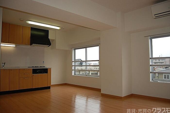 全室洋室の2LDKで、キッチンは3口ガスコンロ付きのシステムキッチン。上階で、日当たり・眺望良好のお部屋です。