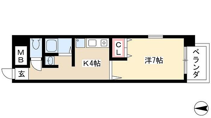 キャッスル若宮 1K/3階