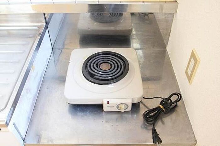 水道料 2000円 ガス栓がないため、ガスコンロは設置出来ません。 コンロ設置箇所にコンセントがあるため、お客様にてIHコンロまたはラジエントヒーターをご用意頂き使用し頂く形となっております。