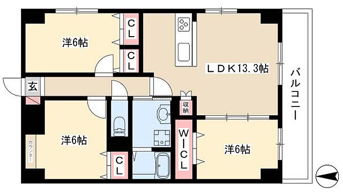 アヴニール・シエル 3LDK/3階