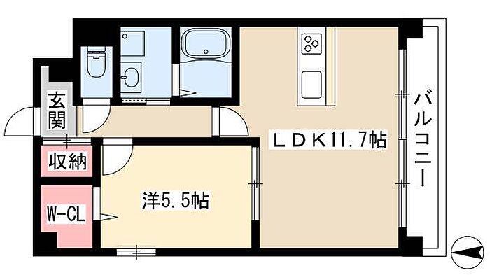 レクラン栄生 1LDK/4階